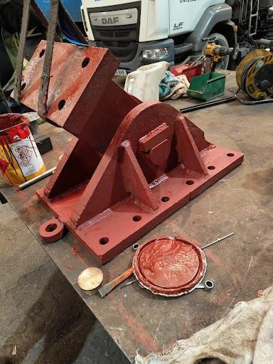 Once removed, the bridge underwent thorough examination, revealing a range of components requiring attention. Specialist braces needed to be fabricated to support the bridge during maintenance, due to its size and weight. Further analysis identified the need for structural welding and fabrication, along with repairs to radial spherical bearings, trunnion shafts, bushings, and the bridge cylinder bracket.